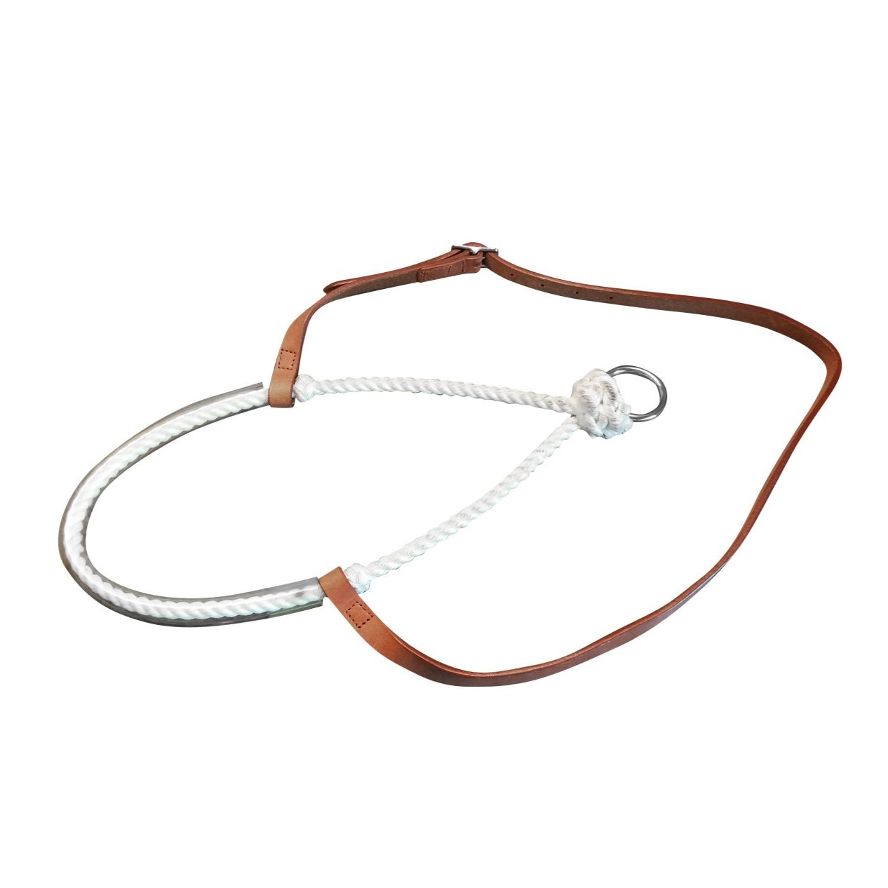 Abbassatesta western in cuoio con lazo cerato e rivestimento in gomma trasparente. Regolabile e di qualità superiore.