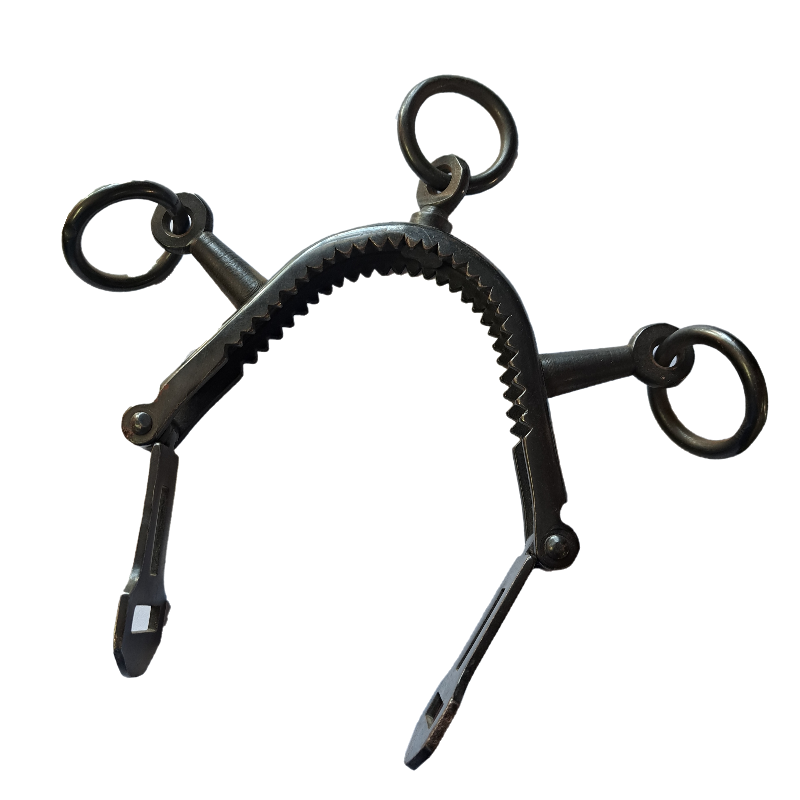 Archetto Spagnolo dentato con 3 anelli ed aste laterali snodate. 1 anello centrale corto e 2 anelli laterali lunghi.