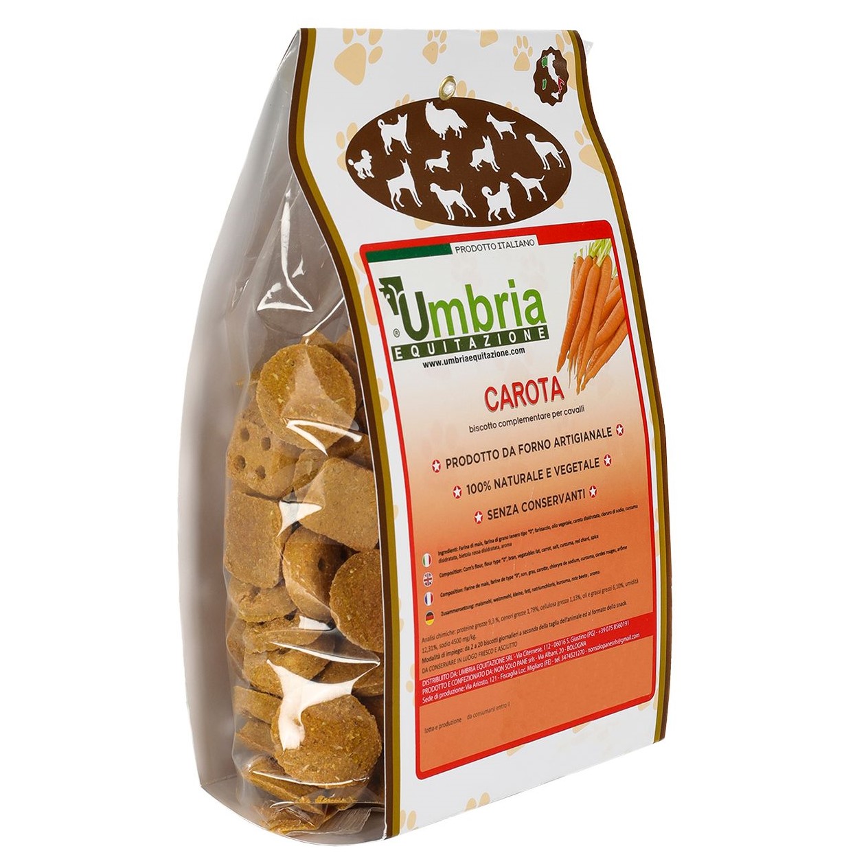Biscotti per cavalli al gusto di Carota. Ottimi snack per ricompensare il cavallo.