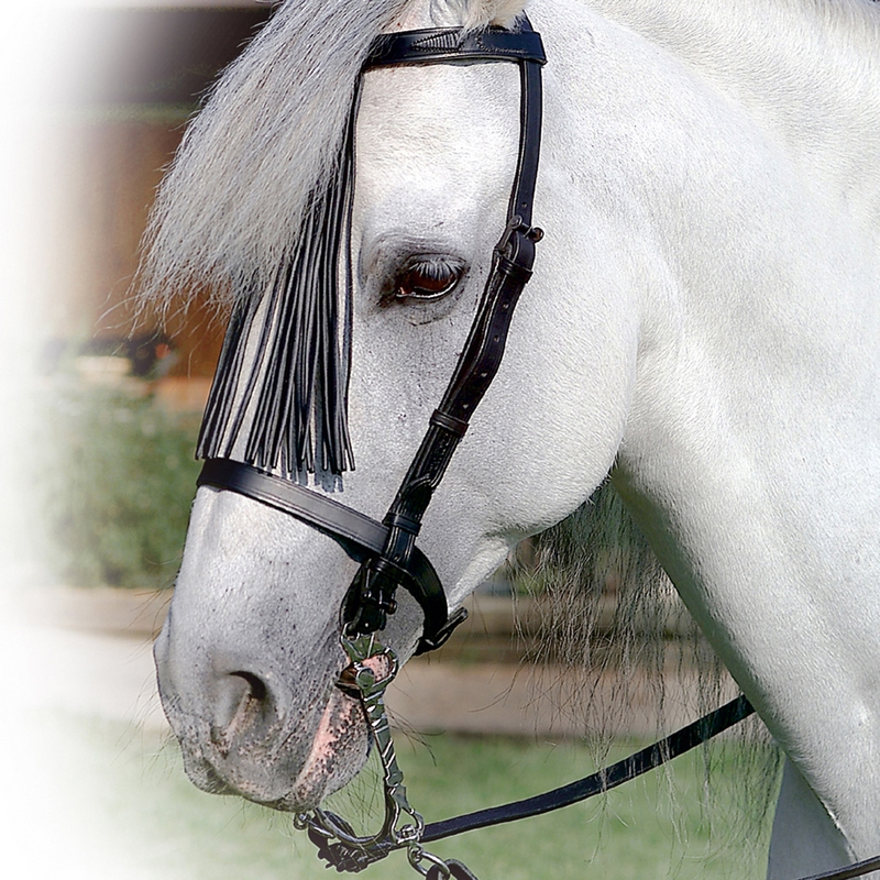 Briglia Spagnola in Cuoio ben definito con frange, completa di redini in cuoio spagnola.