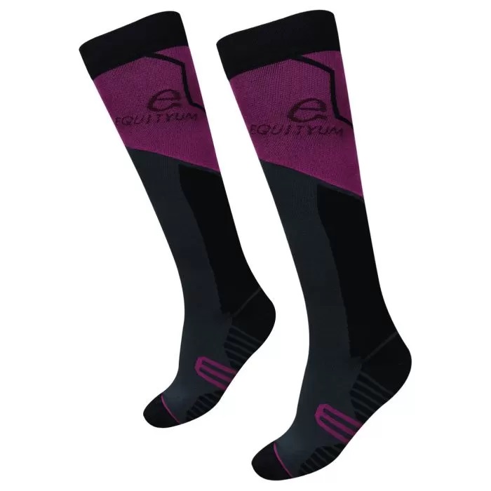 Calze per equitazione donna Equityum modello Gwen. Realizzate in tessuto traspirante e ad asciugatura rapida. Modello con altezza al ginocchio, morbide, elastiche e ad asciugatura rapida in modo da mantenere il piede sempre asciutto e fresco.
