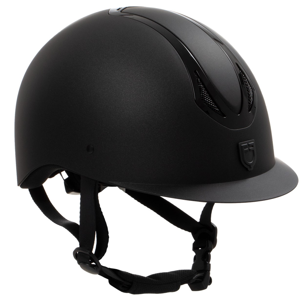 La presenza della targhetta con Logo tono su tono con il frame, rende il casco elegante e raffinato, in pieno stile Equestro.