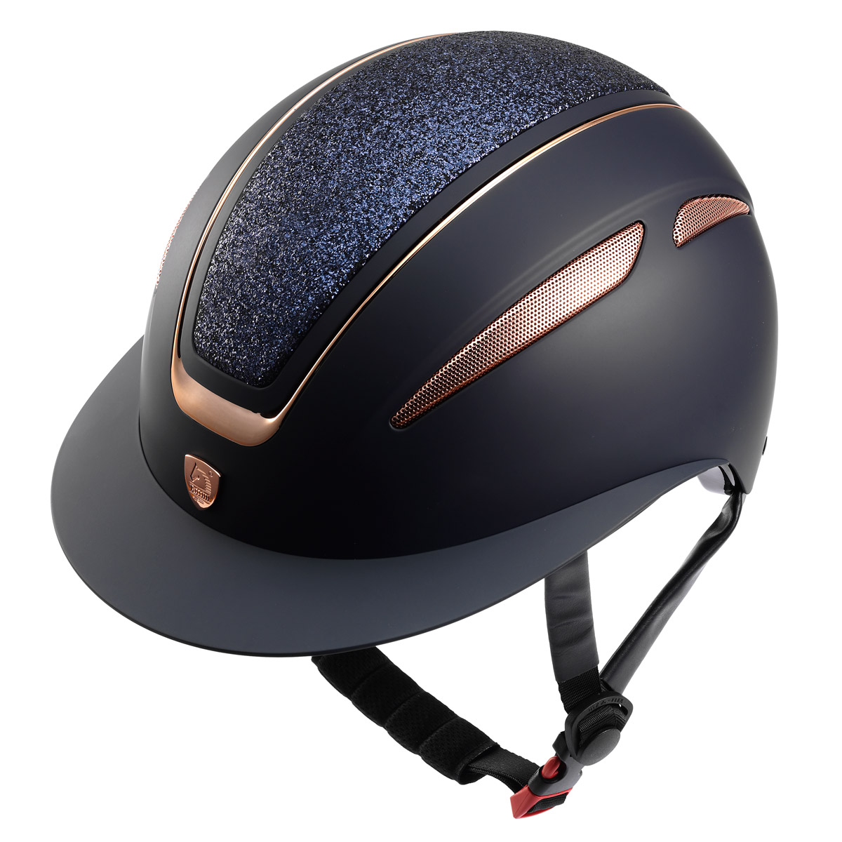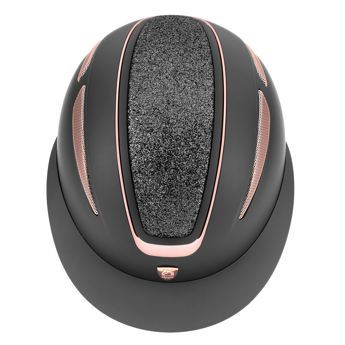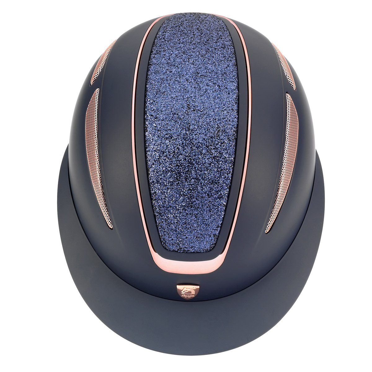 Cap Tattini modello Ariete è un Cap di qualità superiore con profili lucidi oro rosa e nuova placca con glitter. Omologazione CE VG1 e certificazione TUV. Regolazione con strappo, visiera larga più avvolgente ai lati, doppie griglie di ventilazione laterali, fodera rimovibile e lavabile, regolazione micrometrica con rotella.