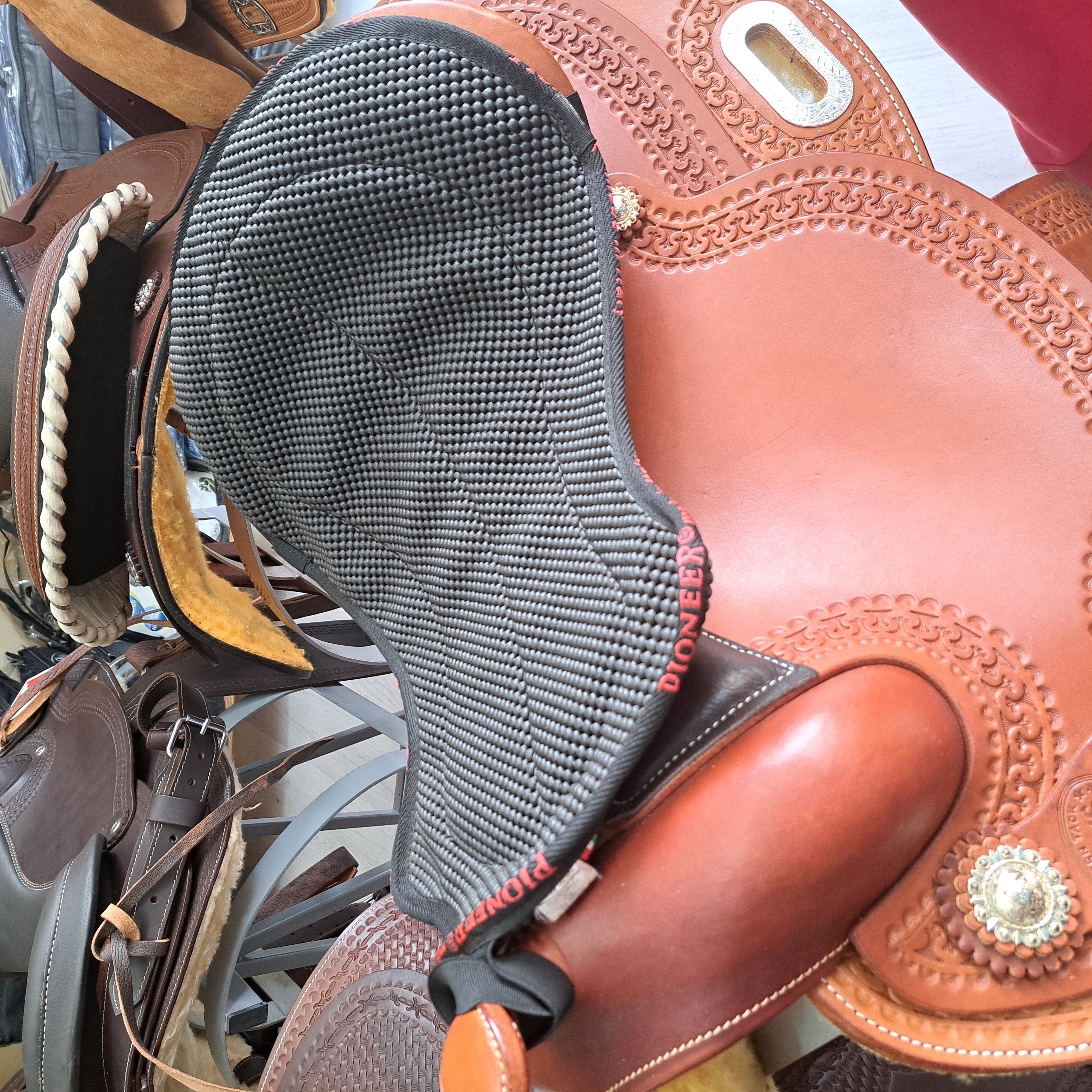 Copriseggio per sella western in neoprene PIONEER. Il copriseggio è dotato di laccetto elastico per avere una maggiore stabilità sul seggio e laccetto per pomolo. Offre un’ ottima comodità durante il suo utilizzo. Lavabile in acqua e di veloce asciugatura.