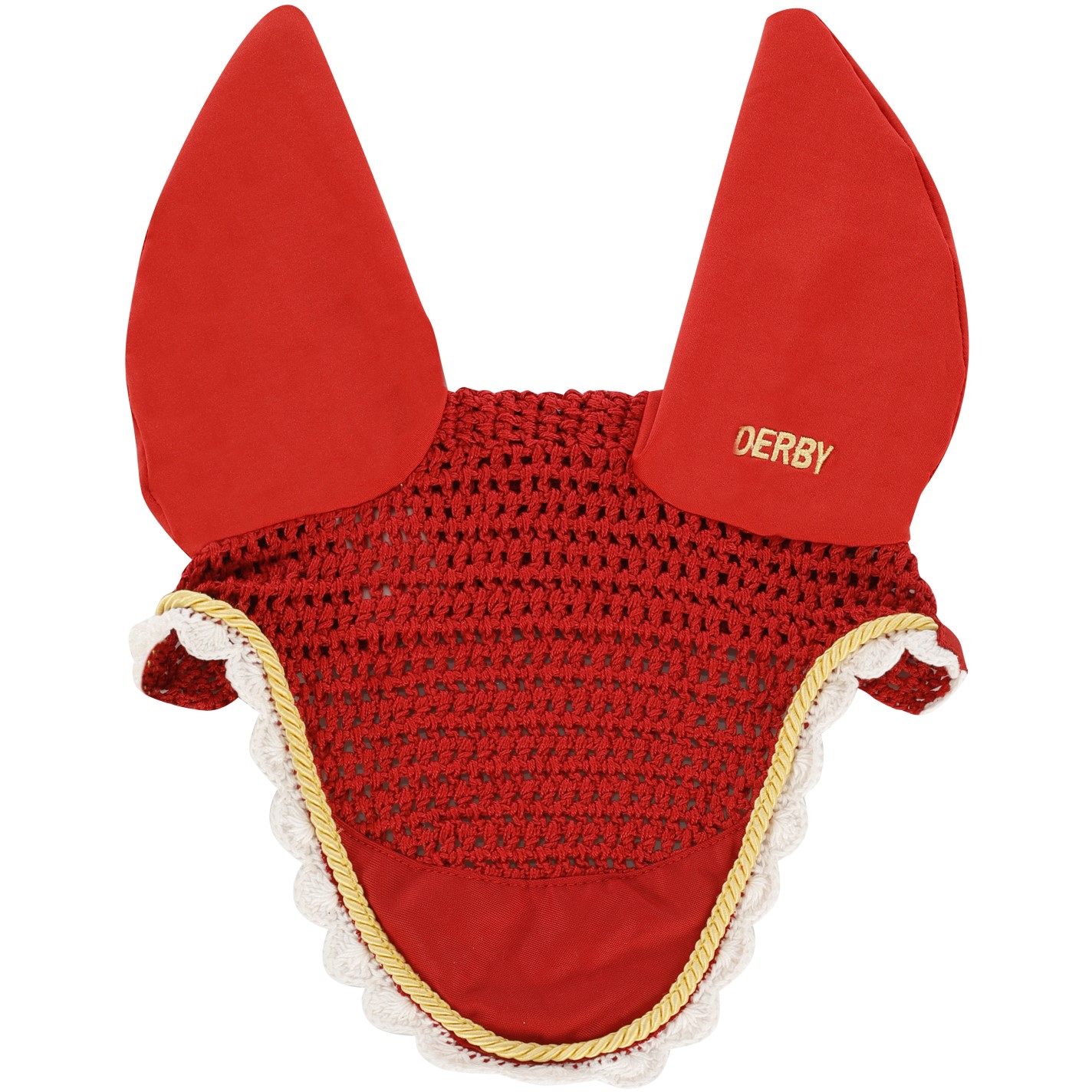 Cuffia Derby in cotone con cordino. La cuffia è un accessorio molto utile per proteggere le orecchie del cavallo dagli insetti in modo tale da evitare fastidi durante gli allenamenti o durante le competizioni.
