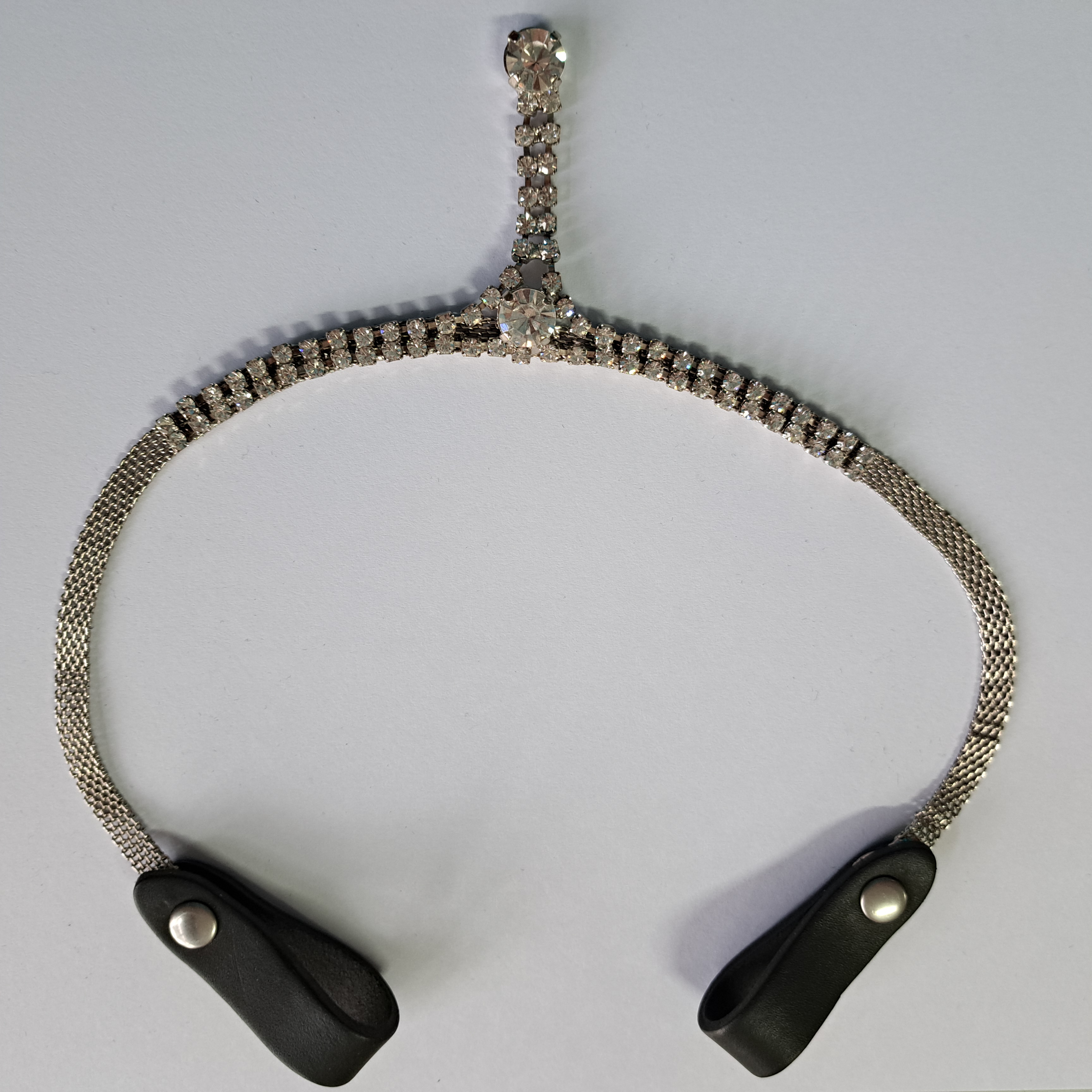 Frontalino per Testiera con Swarovski a Diadema Pendente. Il frontalino va applicato alla testiera per dare un tocco di eleganza al cavallo. Realizzato con Manifatture MADE ITALY. Il frontalino è un ottimo accessori per le grandi occasioni equestre.