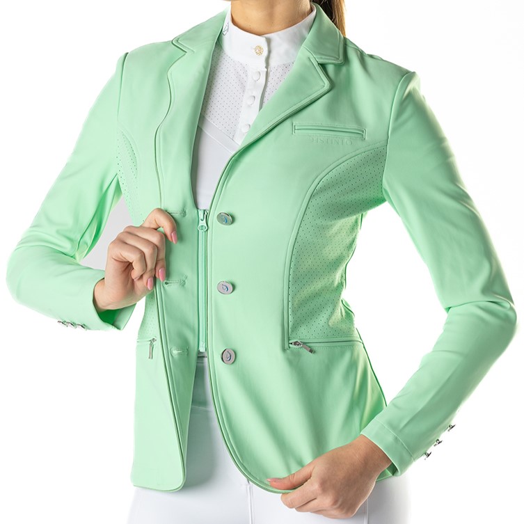 Giacca D-Istinto da concorso Donna in tessuto tecnico traspirante, dotata di cerniera di sicurezza. La Giacca D-Istinto è realizzata per offrire il massimo comfort durante le competizioni offrendo allo stesso tempo stile ed eleganza. Bottoni a specchio con Marchio Loggato.