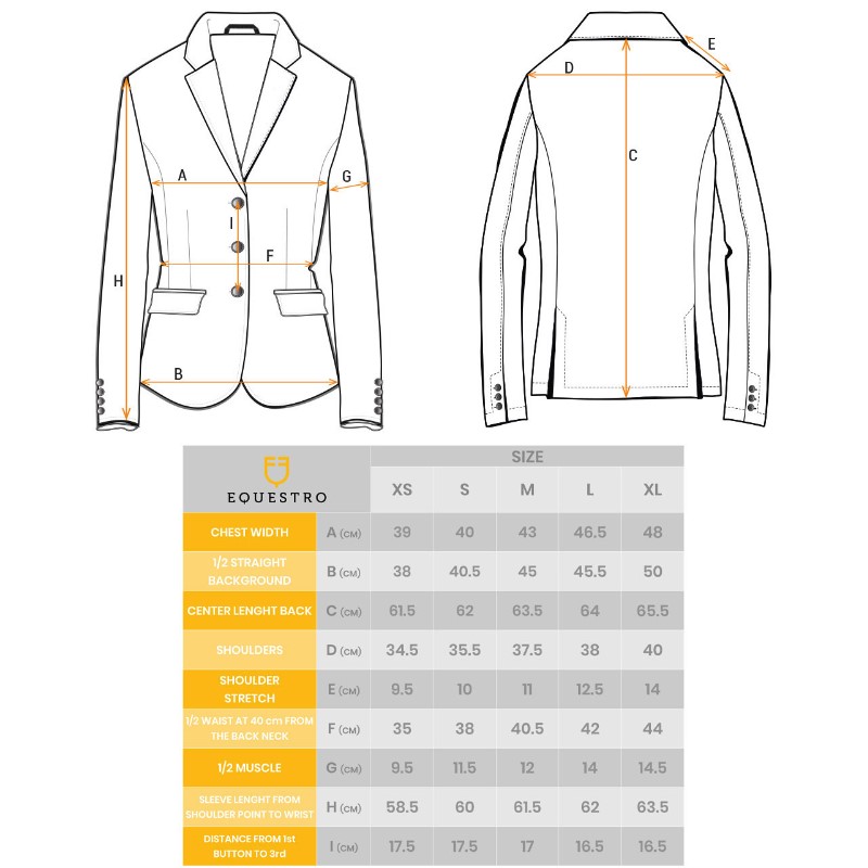 Giacca Equestro donna da concorso in tessuto tecnico traspirante e ultra leggero di ottima qualità . Tre bottoni, tasche a soffietto e patch con logo Equestro sulla spalla.