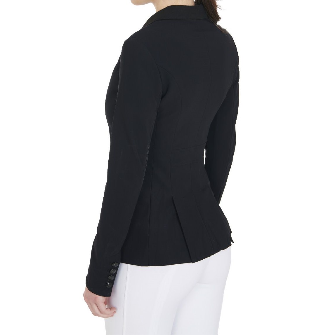 Giacca Equestro donna da concorso in tessuto tecnico traspirante e ultra leggero di ottima qualità . Tre bottoni, tasche a soffietto e patch con logo Equestro sulla spalla.
