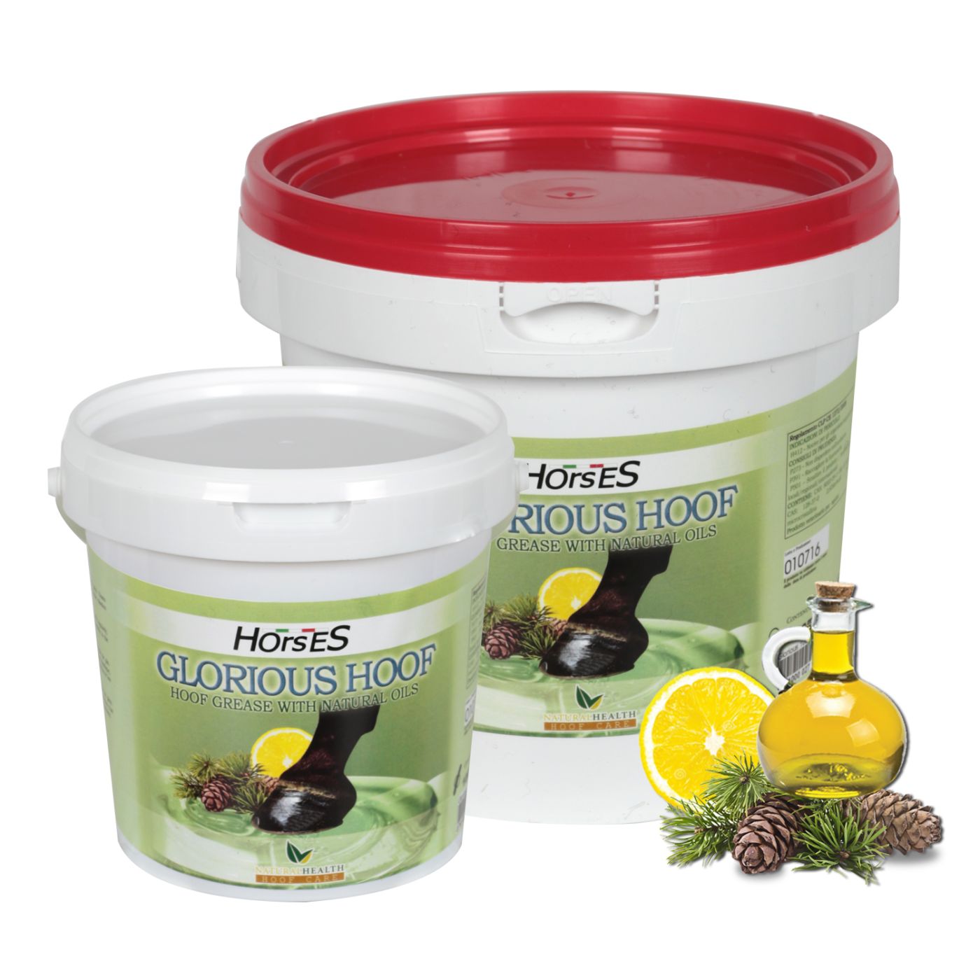 Grasso per Zoccoli “Glorious Hoof” di Horses arricchito con olio vegetale e olio di pino. Usato regolarmente protegge lo zoccolo dagli agenti esterni e lo rende elastico prevenendo crepe o rotture. Non attira insetti e roditori.
