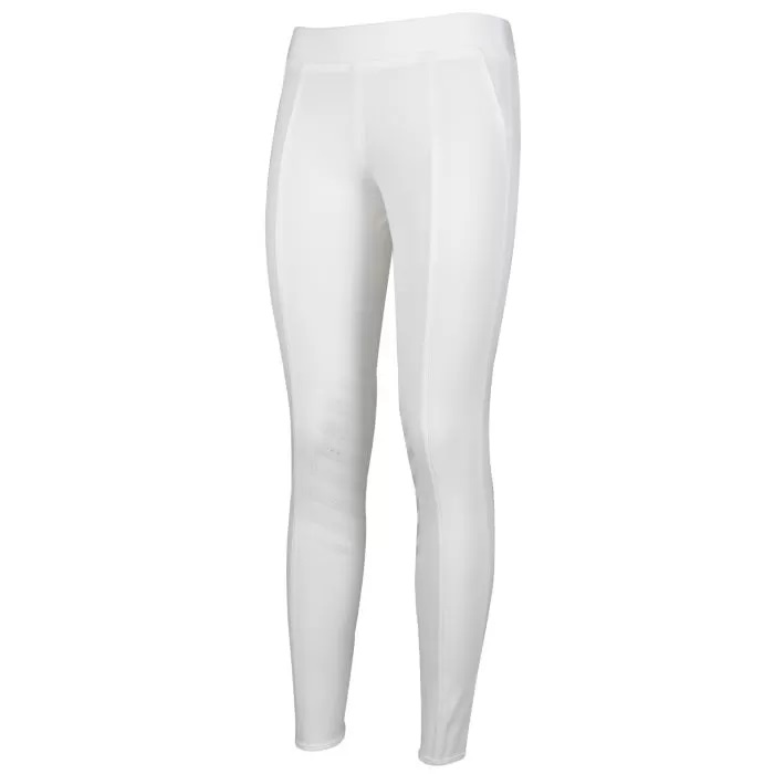 Pantaloni Leggings Horses per donna con Grip, realizzati in tessuto tecnico e comodo. Elastico in vita e non hanno bottone per donare massimo comfort. Hanno due finte tasche sul retro e grip al ginocchio per una maggiore stabilità in sella. Adatti per tutte le stagioni. Vestibilità Regular.