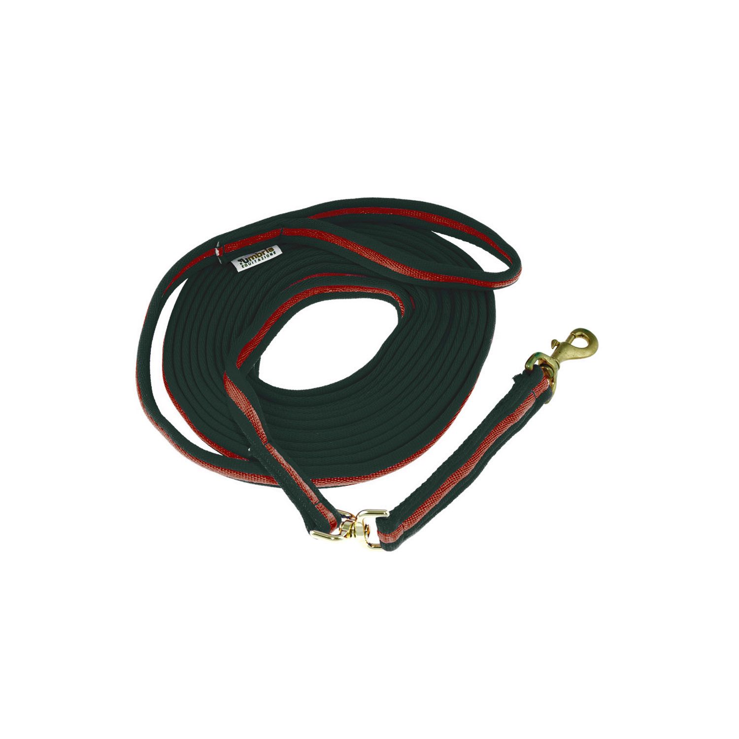 Longia in cotone imbottito morbido e resistente è molto utilizzata durante gli allenamenti per curare la postura del cavallo, oppure viene utilizzata durante gli allenamenti per vari lavori di addestramento o riscaldamento del cavallo. La longia in cotone è completa di moschettone girevole e maniglia passamano.
