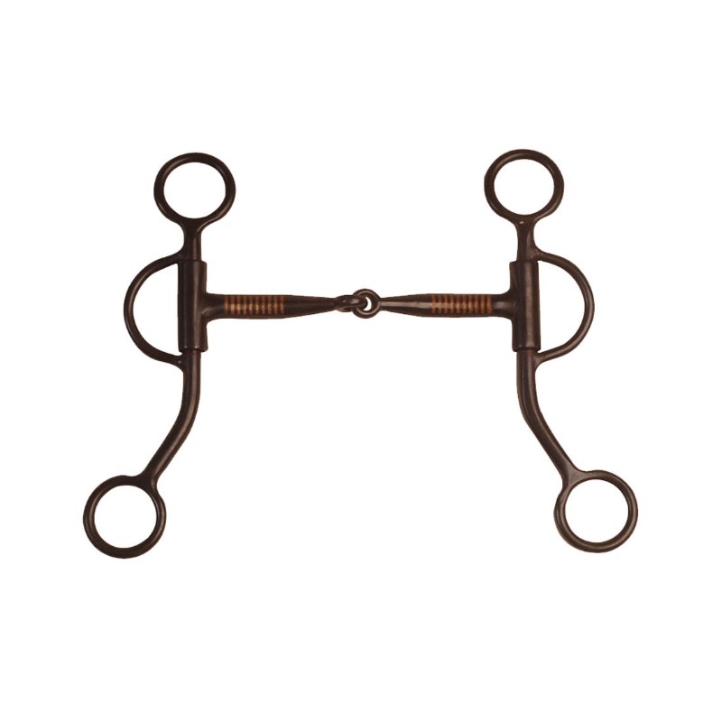 Morso western in ferro nero con aste corte diritte ed inserti in rame nella parte interna dell’ imboccatura.