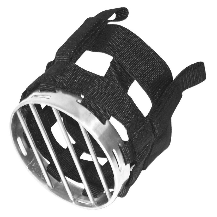 Museruola in Nylon con Grata inox. La museruola può essere applicata direttamente alla cavezza grazie agli strappi in velcro alloggiati sulla parte in nylon.