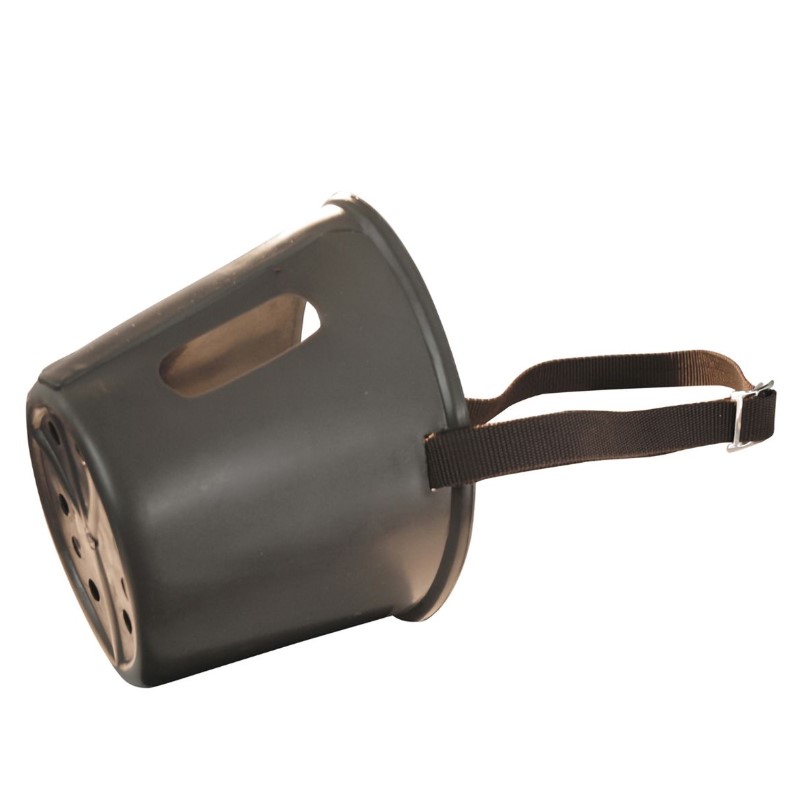 Museruola in plastica con fori nella parte superiore e laccetto in nylon regolabile.