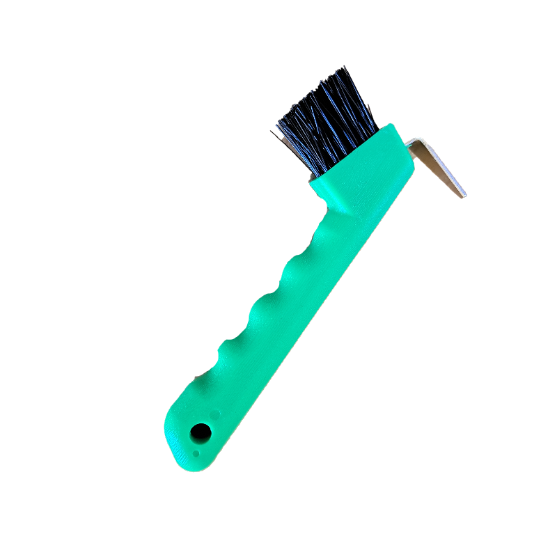 Nettapiedi in plastica con spazzolino e gancio inox. Impugnatura comoda.