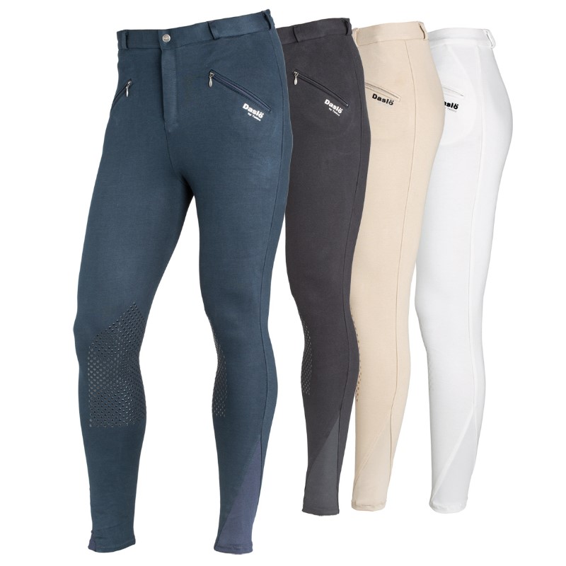 Pantaloni Uomo Daslo in maglina di cotone elasticizzata (95% cotone e 5% spandex), peso 300 gr. Ideale per le 4 stagioni. Linea aderente con grip antiscivolo in silicone al ginocchio. Inserto elastico a triangolo alla caviglia.
