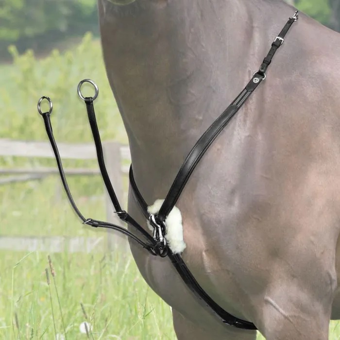 Forchetta della martingala removibile grazie ai due moschettoni.