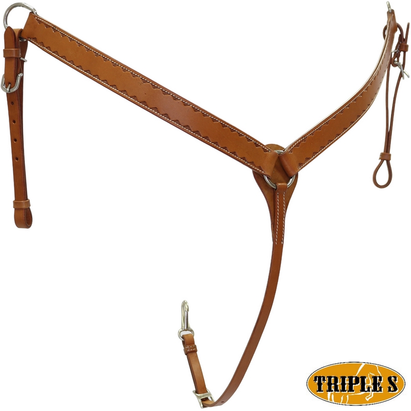 Pettorale western TRIPLE S in cuoio con lavorazione a Zig Zag.