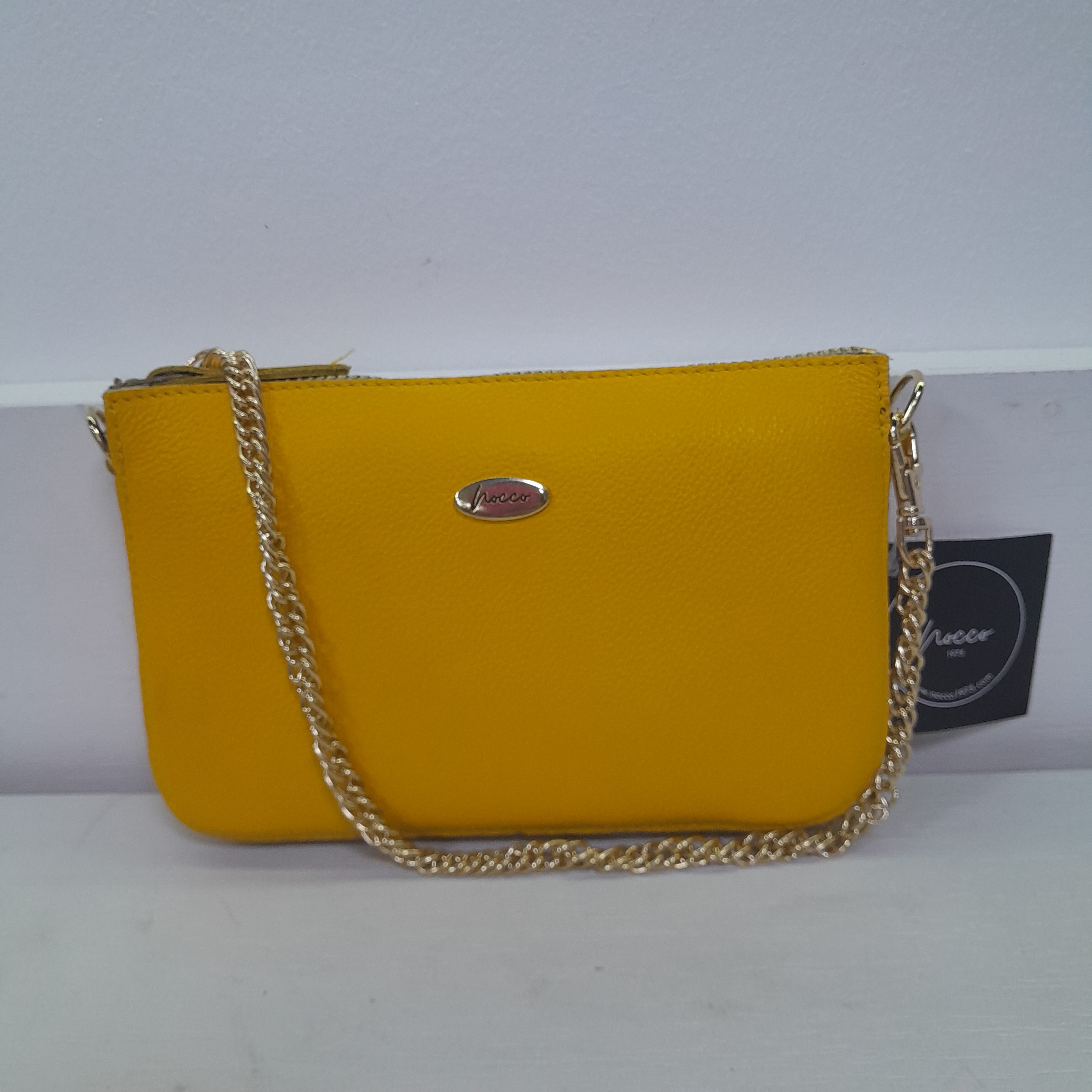 Pochette con catena in pelle martellata modello Madrid. La pochette è realizzata con materiali di qualità superiore MADE ITALY. La pochette offre per uno stilo Casual ed Elegante.