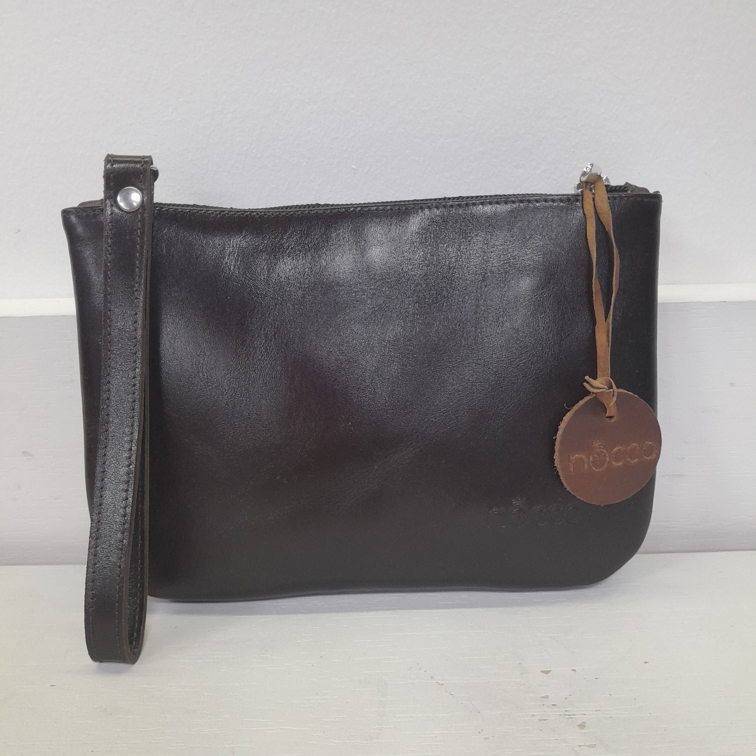 Pochette in Pelle liscia modello London realizzata interamente in pelle di vitello. Chiusura con zip e laccetto corto in pelle.