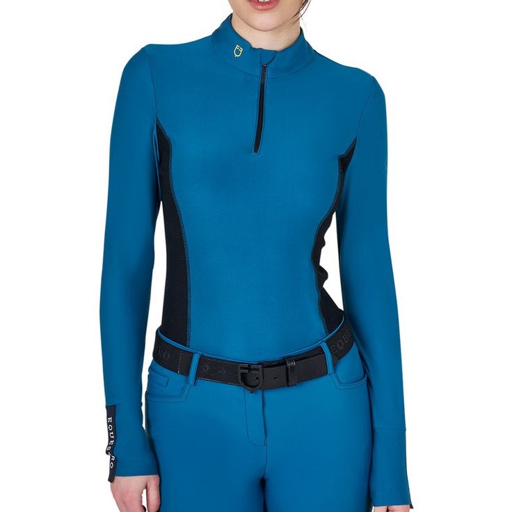 Un’eleganza minimale, impreziosita da inserti a contrasto con grafica scritta Equestro sui polsini.