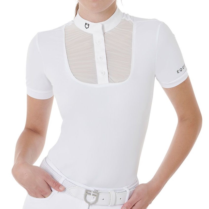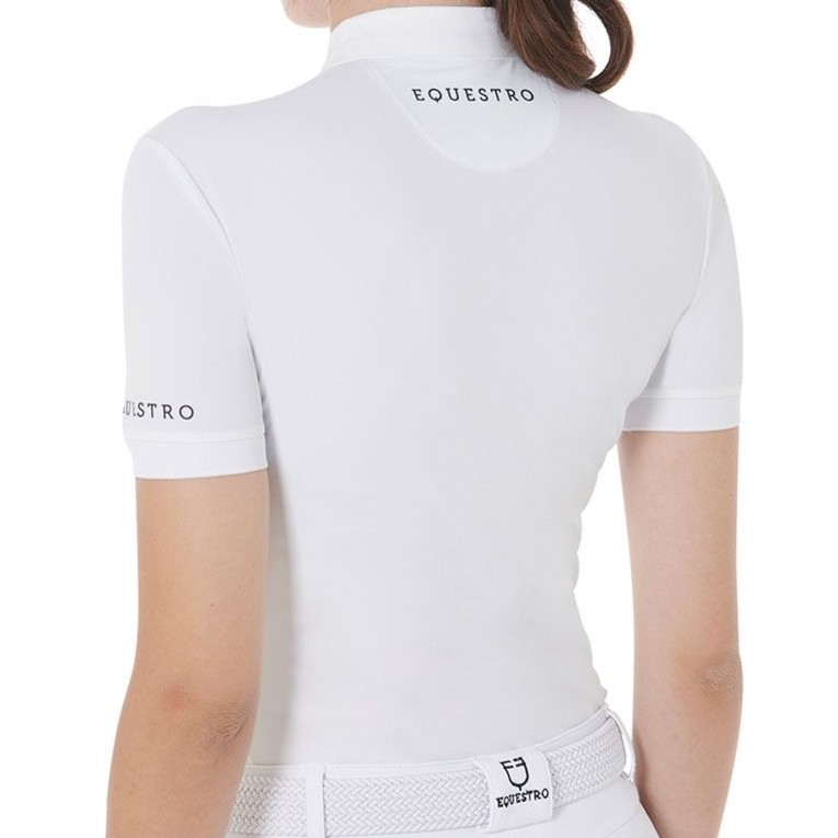 Polo Equestro da donna slim fit a maniche corte realizzata in tessuto tecnico e cotone cucito sul petto. Con le sue proprietà traspiranti mantiene la temperatura corporea ideale.