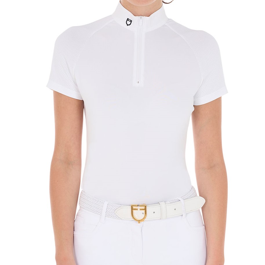 Polo Equestro donna slim fit a manica corta da concorso ideata per garantire totale libertà di movimento e traspirabilità .