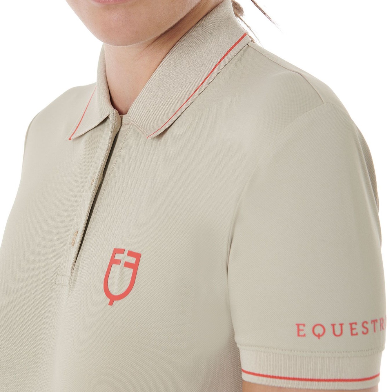 Decorata con una rifinitura a contrasto sul giro manica e sul colletto, logo Equestro sul petto e chiusura a bottoni.