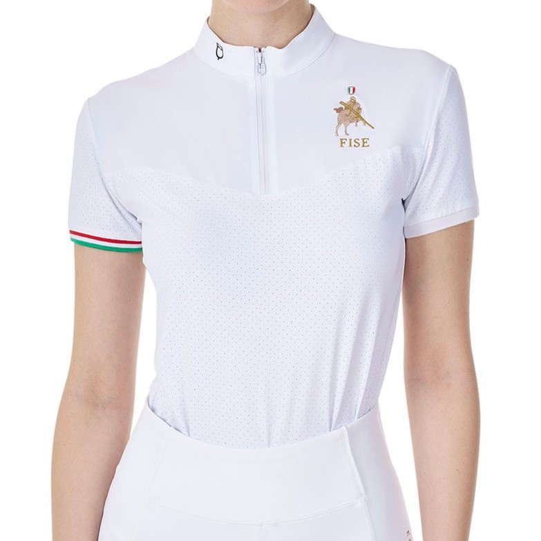Polo Equestro x Fise Donna da Concorso con Zip Bianco