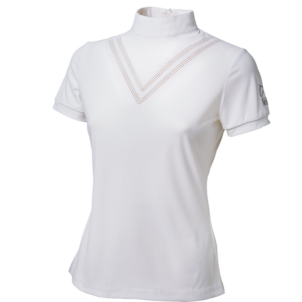 Polo Tattini Bambina da concorso a manica corta con colletto coreano traforata e zip posteriore. La polo è realizzata in tessuto tecnico traspirante ed è indicata per le stagioni più calde.