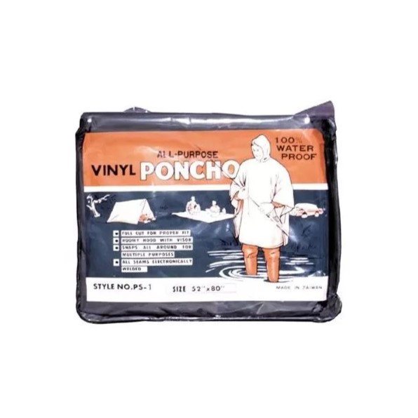 Poncho impermeabile Vinyl con cappuccio è realizzato con materiale gommato ed è ottimo per proteggersi dall’ acqua. Comodo e pratico da portare con sé.