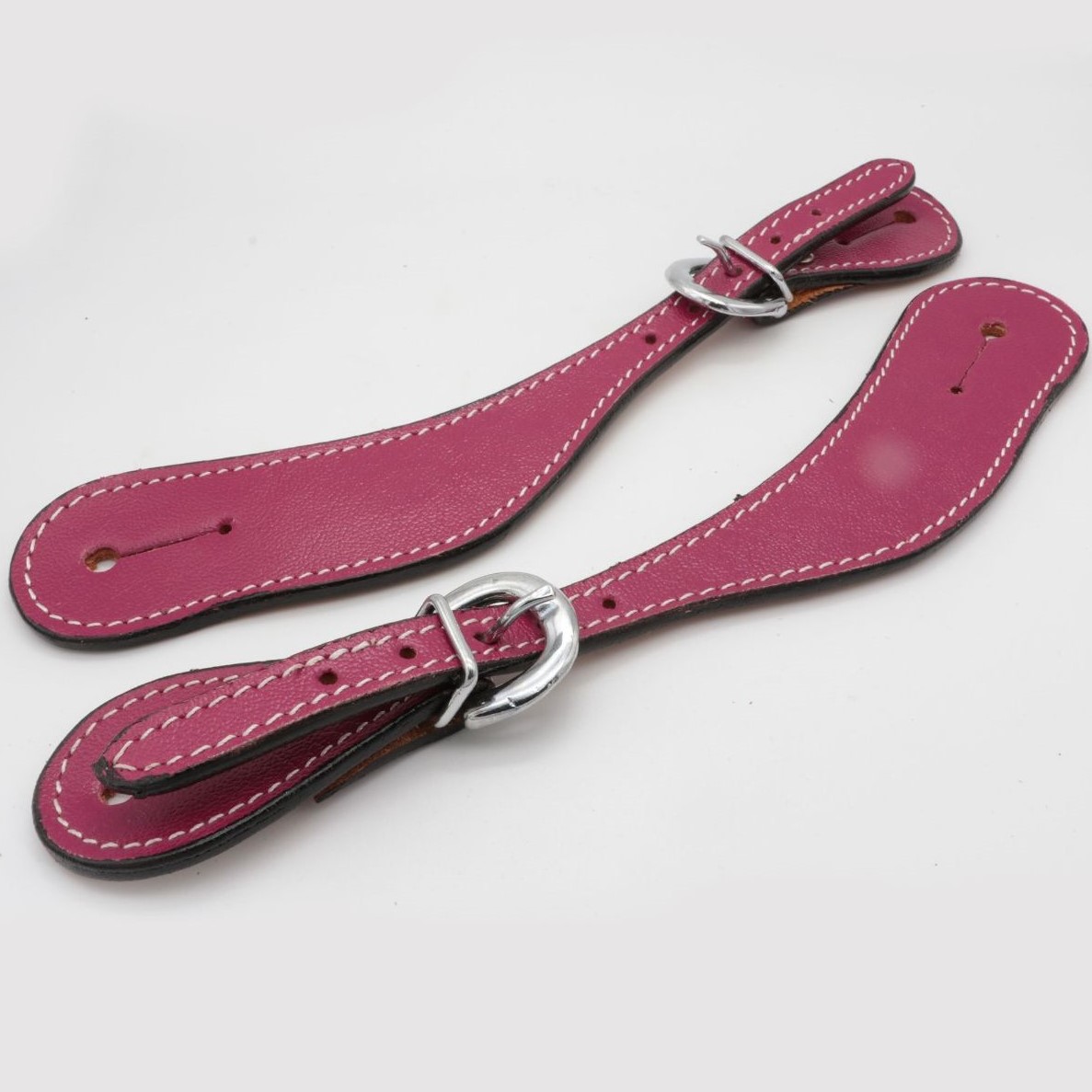 Porta Speroni western realizzati in cuoio colorato per offrire uno stile differente in sella. Realizzati con fibbia regolabile. Si adattano a tutti gli speroni western.