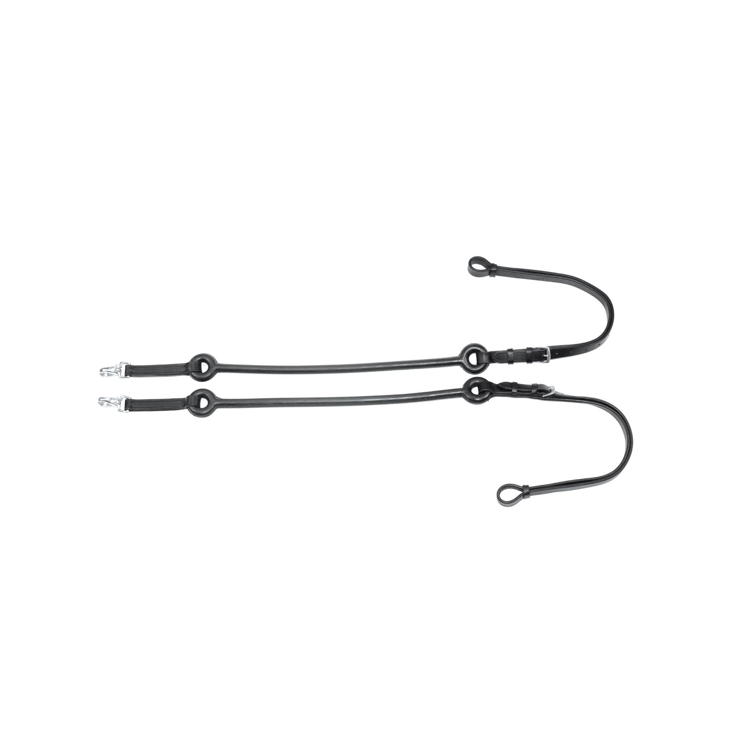 Redini da doma in cuoio con tiranti in gomma elastiche. Le redini sono indicate per essere utilizzate durante gli allenamenti, e permettono di insegnare nuove posture al cavallo, oppure per migliore e correggere determinati movimenti. Regolabili e venduti a coppia.