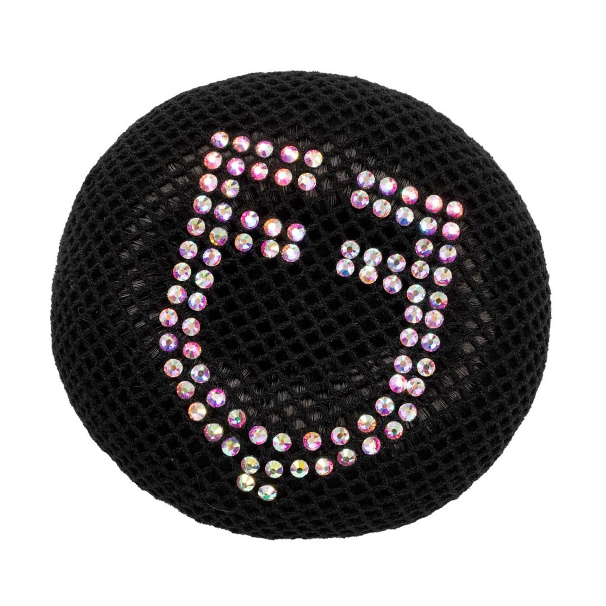 Retina per capelli modello Harcadya con strass, elegante e pratica grazie alla chiusura con cordino elastico regolabile. Decorata con logo Equestro realizzato in strass multicolore.