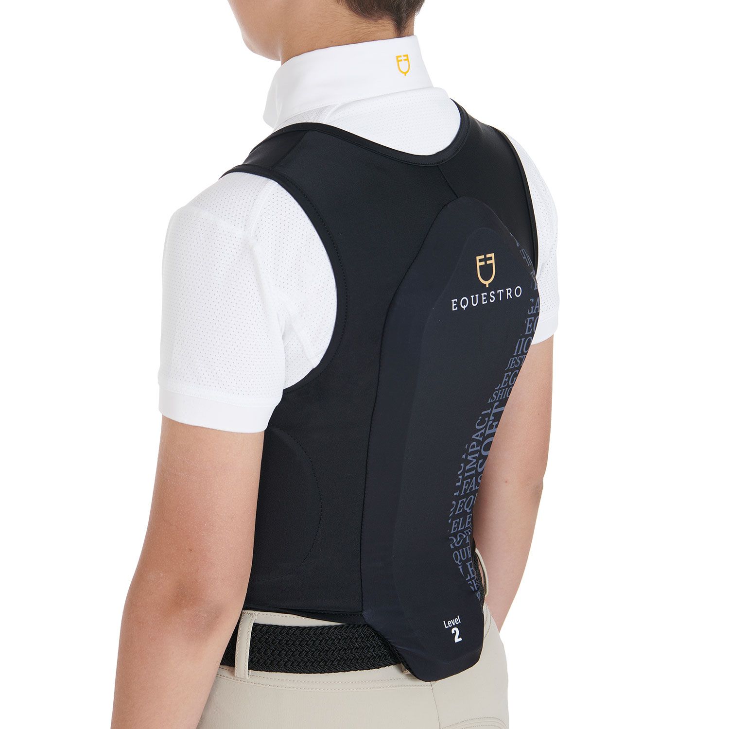Il salvaschiena è decorato con logo Equestro sia sul petto che sul dorso.