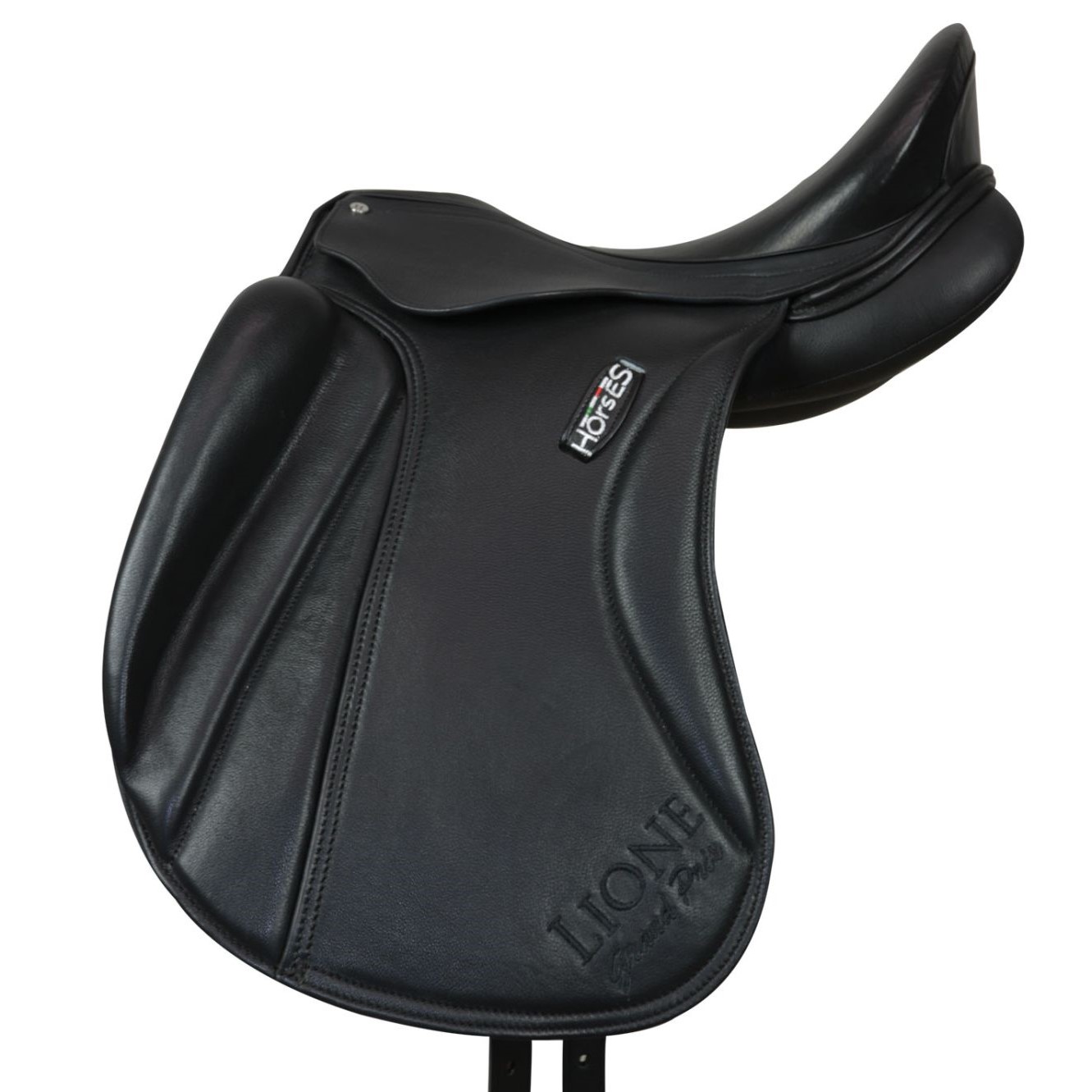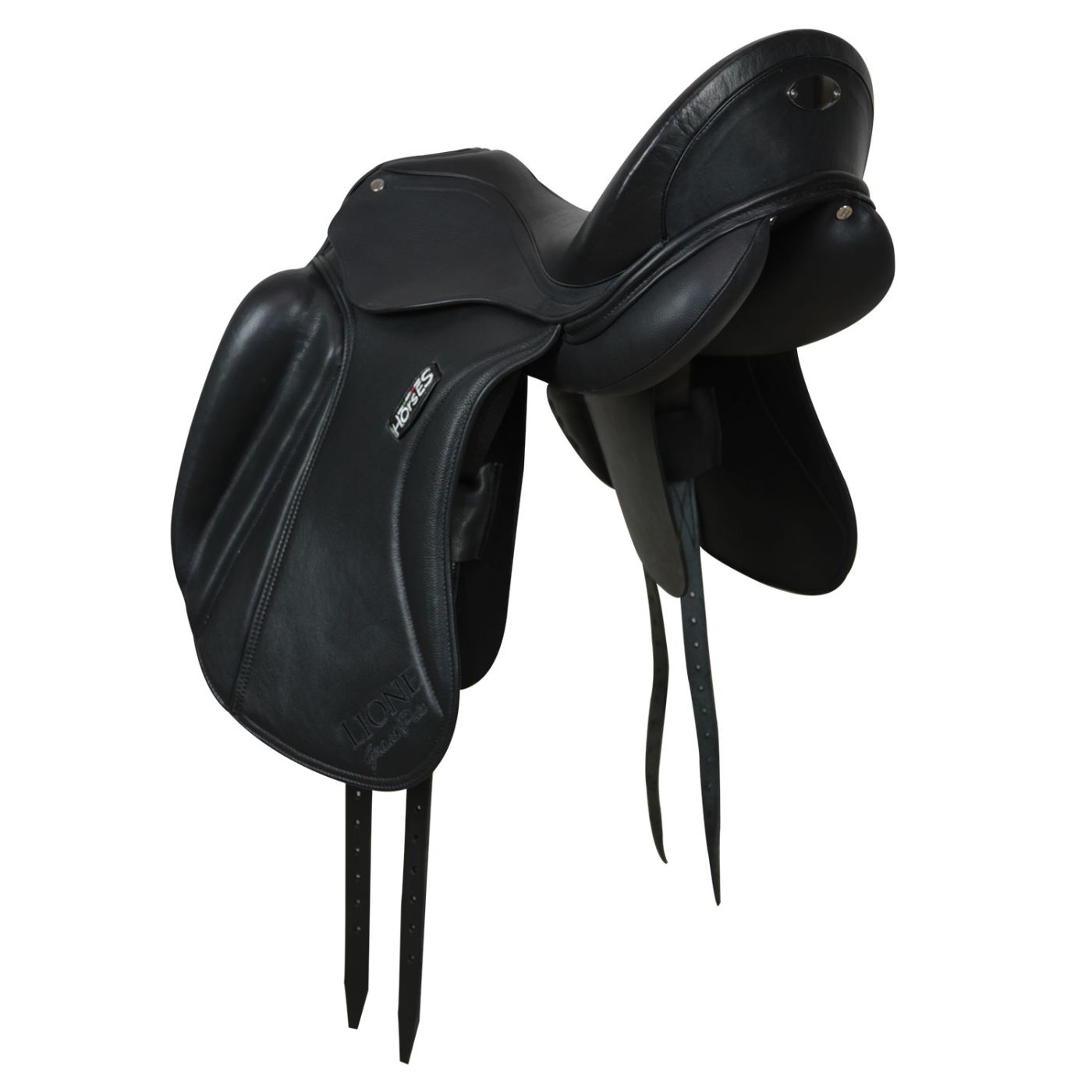 Sella da Dressage Horses modello Lione. Sella da dressage realizzata in cuoio morbido e di qualità , rifinita lungo i bordi da impunture in tono. Gli appoggi sono alti e confortevoli, la seduta è profonda e permette la massima stabilità . Appoggi pronunciati per una maggiore stabilità in sella.