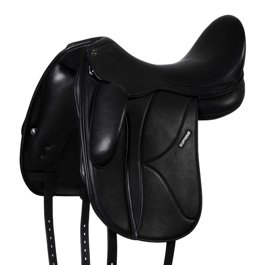 Sella Supreme da Dressage modello Richmond, realizzata in pelle doppiata, studiata per offrire il miglior close contact senza bloccare i movimenti del cavallo.