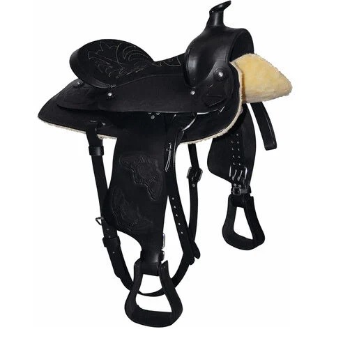 Sella Western in cuoio con seggio in pelle scamosciata, completa di sottopancia anteriore a cordoncini e sottopancia posteriore in cuoio regolabile. La sella western con seggio in pelle scamosciata è una sella indicata per chi è alle prime esperienze e cera una sella western per potersi allenare ed allo stesso tempo comodo per le passeggiate a cavallo. La sella è un in cuoio e si consiglia di utilizzare il grasso per cuoio durante la pulizia, in modo tale da poter offrire una lunga durata nel tempo.