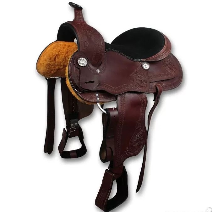 Sella Western modello New Durango in cuoio con lavorazione flowers e seggio in pelle scamosciata. Realizzata in morbido cuoio durevole nel tempo offre un’ ottima comodità durante il suo utilizzo. La sella western New Durango è molto indicata per le lunghe passeggiate a cavallo.