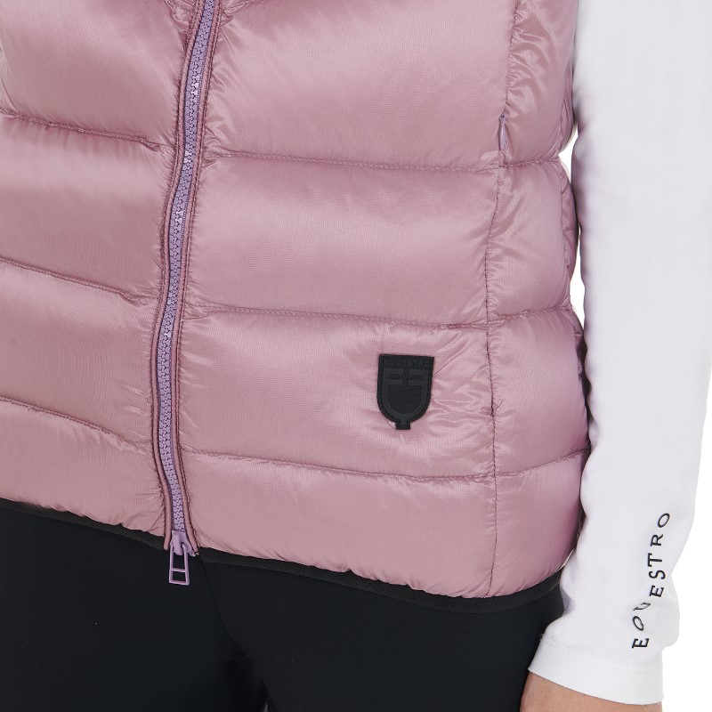 Giacca smanicata donna in tessuto tecnico imbottito. Dotata di cappuccio removibile e regolabile tramite pratiche coulisse, si presta per essere indossata in tutte le condizioni atmosferiche.