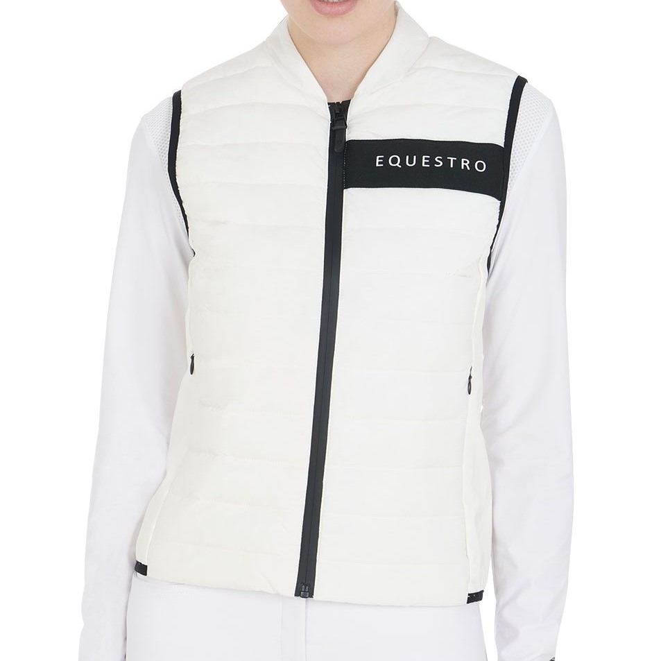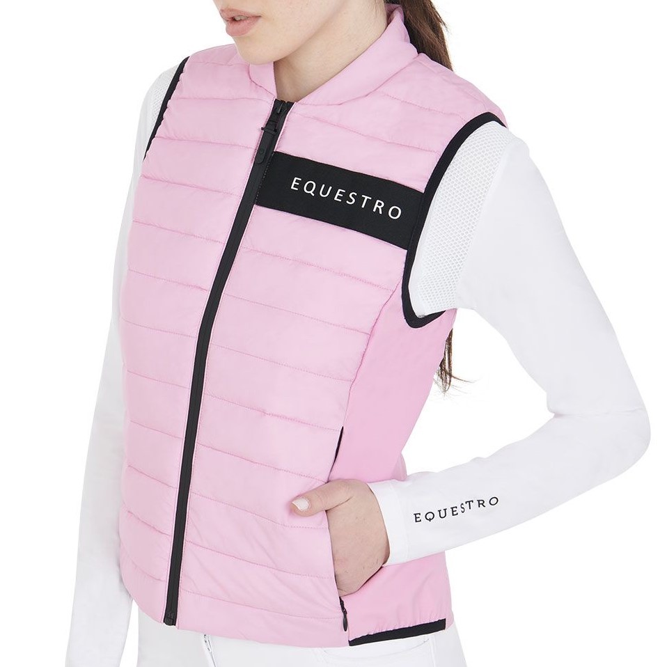Il capo è leggermente imbottito in modo tale da poter essere utilizzato anche a basse temperature e impreziosito da una chiusura a zip con sistema antivento, due tasche laterali e scritta Equestro sulla parte sinistra del petto.