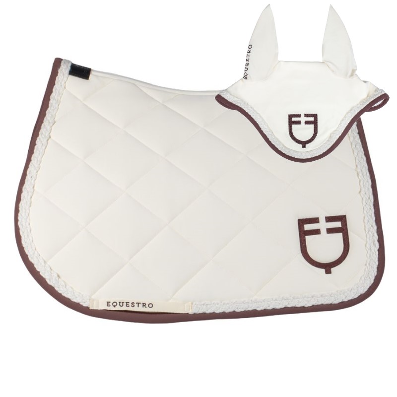 Sottosella e Cuffietta Equestro Tessuto Tecnico Bordo con Treccia Bianco Antico Marrone