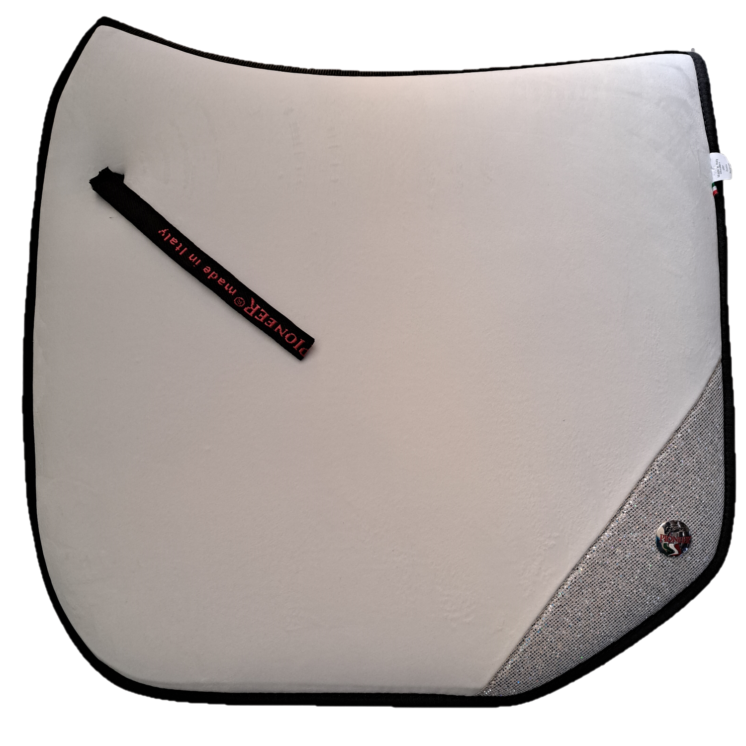 Sottosella Pioneer da Dressage in Velluto con imbottitura in Memory Foam ed interno in Neoprene antiscivolo. Il sottosella è dotato da strass all’ angolo del sottosella. L’ imbottitura in memory foam garantisce al Cavallo una massima protezione da eventuale fiaccatura. Il neoprene interno antiscivolo offre un ottimo grip durante il suo utilizzo.
