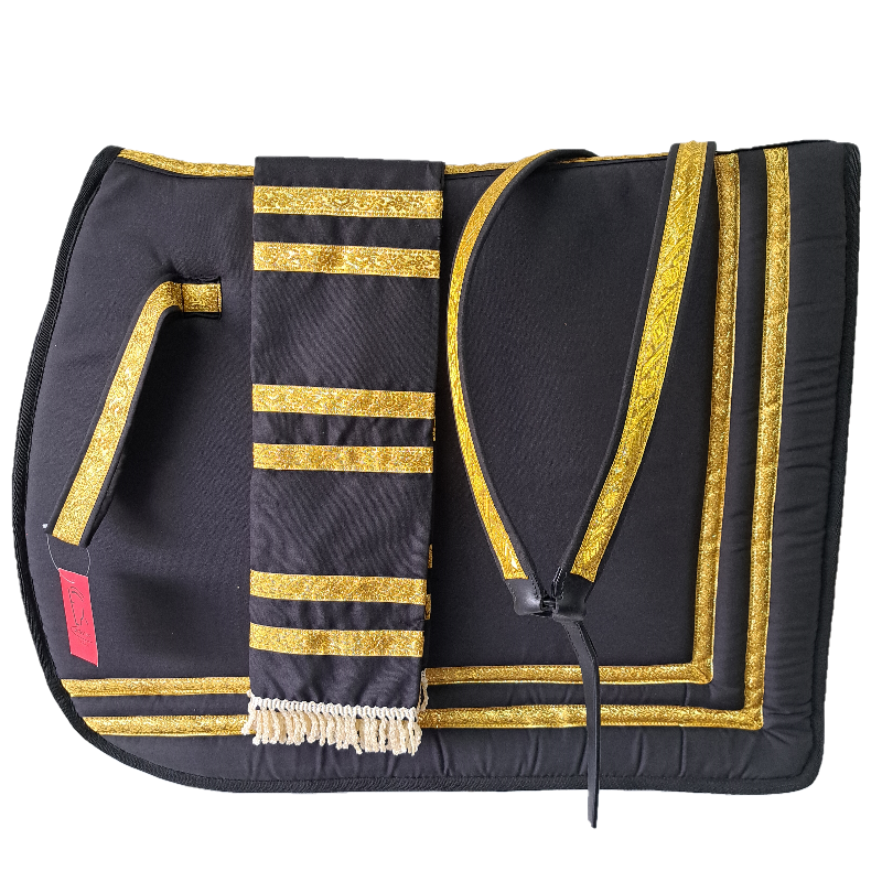 Sottosella Spagnolo Zaldi Completo di Sciarpa e Pettorale Nero e Dorato