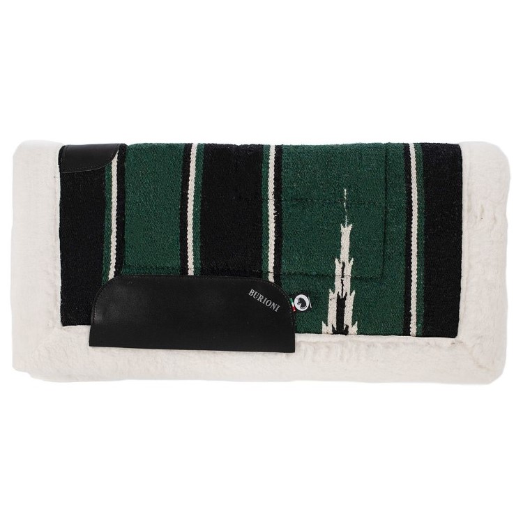 Sottosella western Burioni ” Made Italy ” in navajo ed interno in lana sintetico. Il sottosella è realizzato con lana sintetica abbastanza imbottito per offrire al cavallo un ottimo confort, la parte esterna è in navajo tipico materiale western ed inoltre è rinforzato in pelle sul garrese e sui laterali nella parte del sottopancia. Il sottosella è lavabile in acqua.