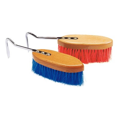 Spazzola per zoccolo con dorso in legno e nettapiedi in acciaio.