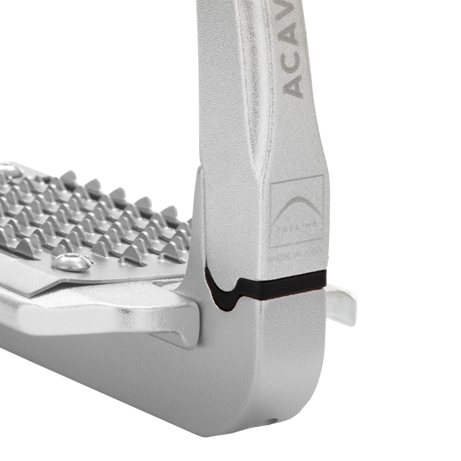 Le staffe Acavallo Rel-X 180 presentano un’apertura laterale brevettata e una composizione tecnica avanzata grazie a un innovativo stampaggio a iniezione. Realizzate con metallo high-tech e polimeri flessibili, offrono maggiore comfort e ridotta rigidità rispetto alle staffe tradizionali. Inoltre il braccetto dotato di innovativo movimento di rotazione a 180° permette al cavaliere un facile rilascio in caso di caduta frontale, posteriore o laterale. La parte superiore in acciaio inossidabile con fori orizzontali garantisce una presa ottimale in tutte le condizioni, proteggendo le staffe dalla corrosione. Il meccanismo di bloccaggio e rilascio, posizionato strategicamente, impedisce scivolamenti accidentali. Perno e componenti interni dello staffa sono in acciaio inox. La panca è inclinata a 5° con pedana dotata di Grip System. Le staffe hanno un peso leggero (519 gr.) e presentano una superficie in alluminio puntinato con trattamento “shot peening”. Vendute a coppia.