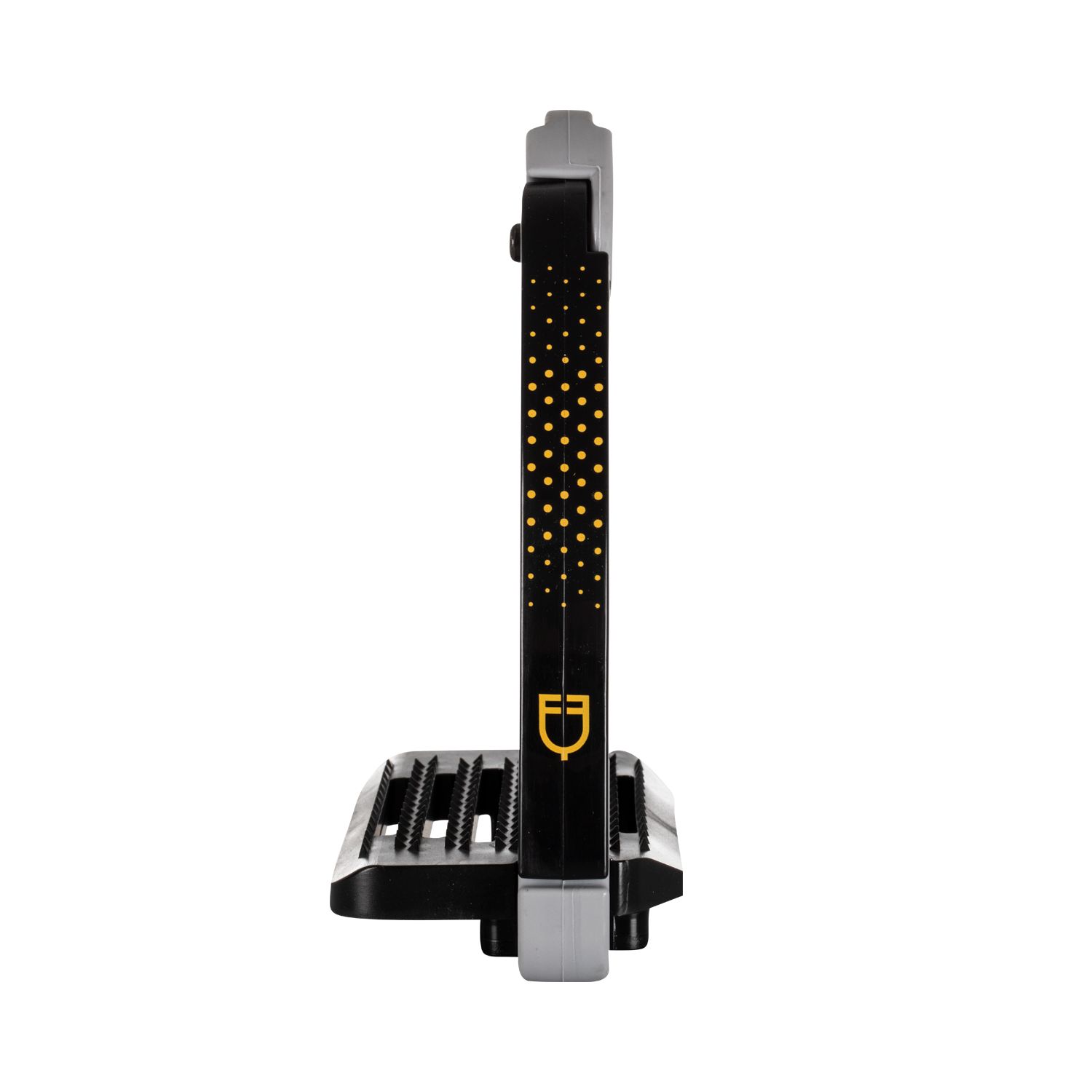 La panca larga è dotata di un grip altamente resistente, offrendo una presa salda e stabile. Questo design innovativo assicura una perfetta aderenza del piede, contribuendo a una maggiore sicurezza e stabilità del cavaliere in sella.