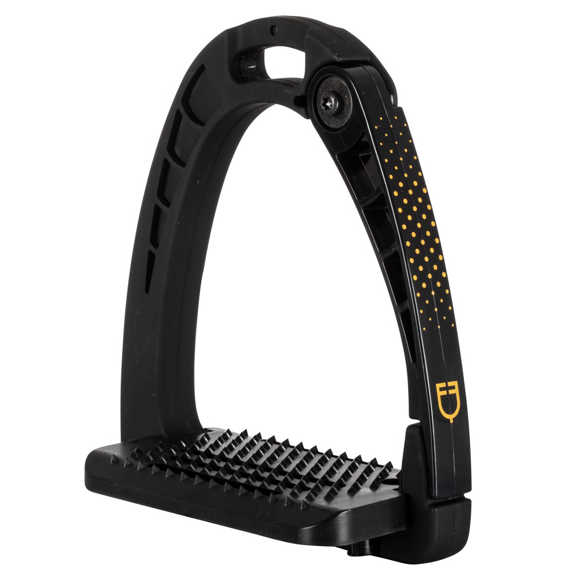 Progettate appositamente per conferire la massima sicurezza a cavallo, le staffe presentano un brevetto per l’apertura laterale, che permette un rilascio rapido del piede in situazioni di emergenza. L’apertura si trova strategicamente poco sopra la panca, evitando che sabbia o sassi possano ostacolarne il corretto funzionamento.